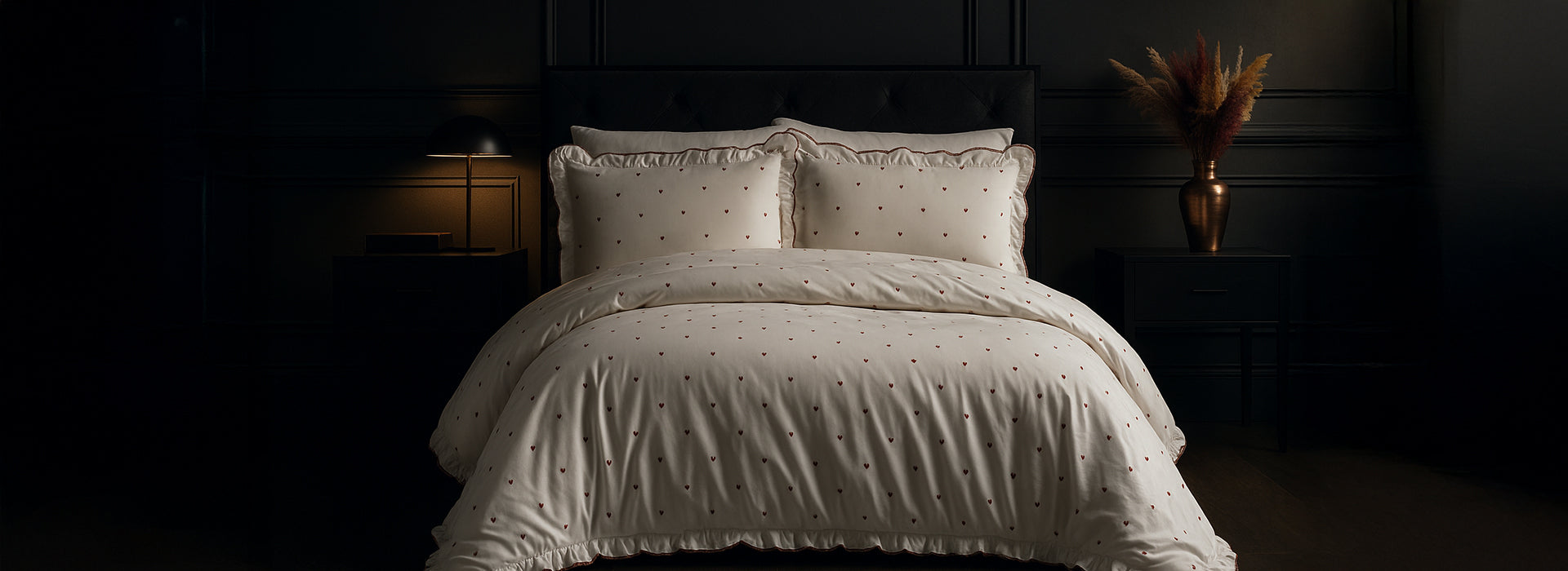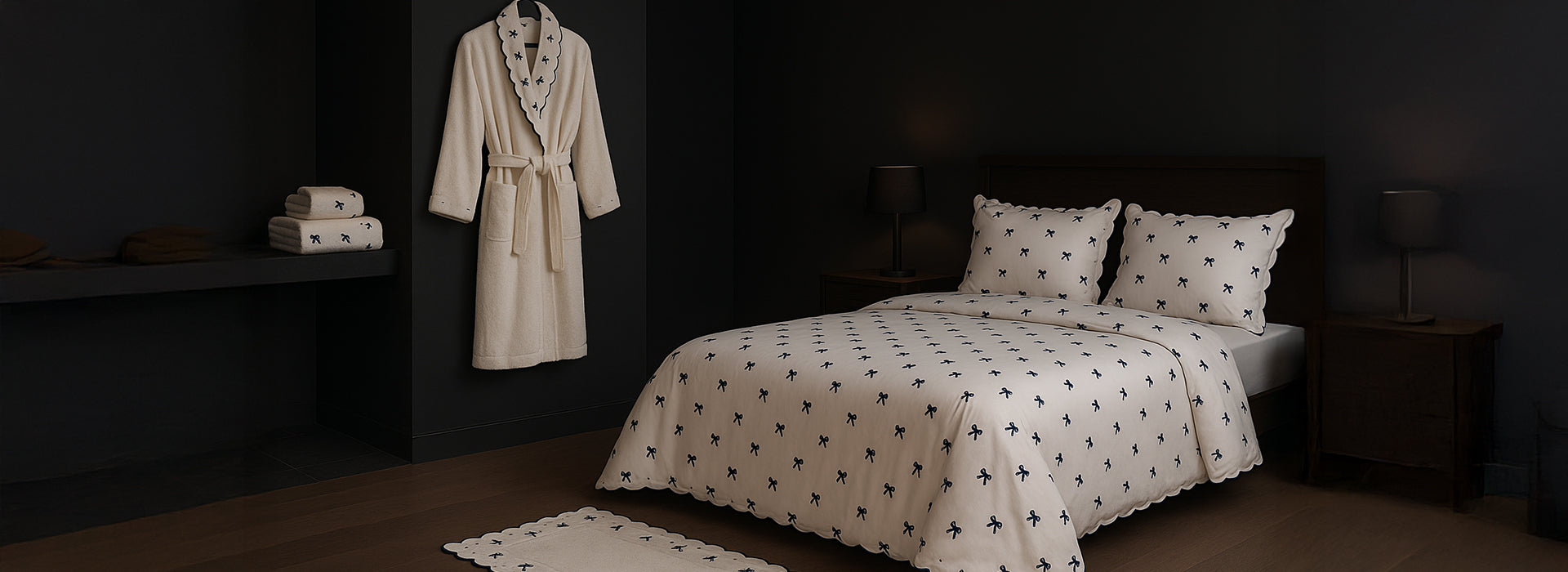 Serena Bow Embroidered Cotton Satin Double 6-Piece Duvet Cover Set